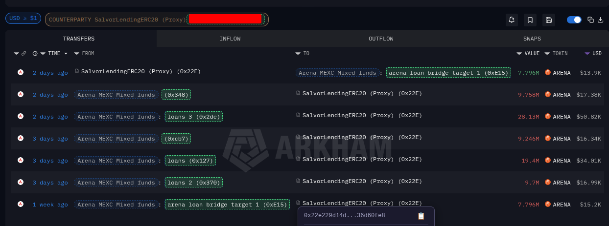Another case of Salvor loan fuckery. The proceeds from the earlier loan were sent to some wallet that is just holding them.