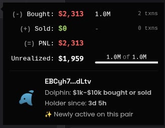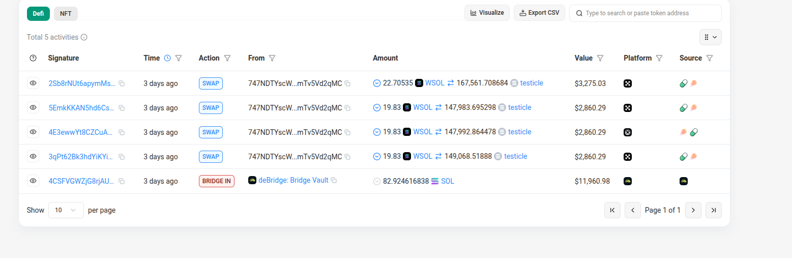 Looks like this one just bridged to a Solana wallet buying testicle (this will never get old). You know what, let’s see how he’s doing on testicle.