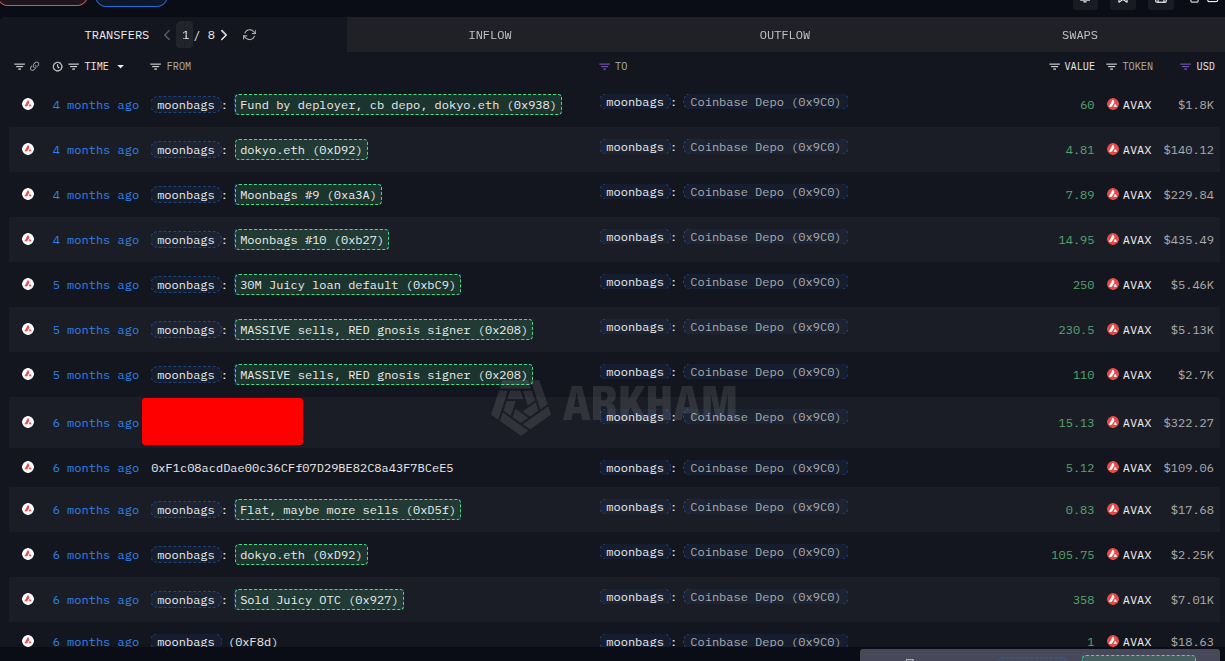 EIGHT PAGES of interactions with other wallets I have tagged as Moonbags
