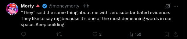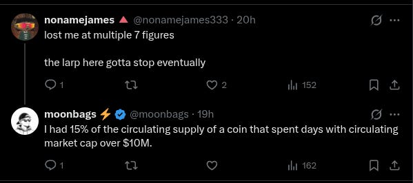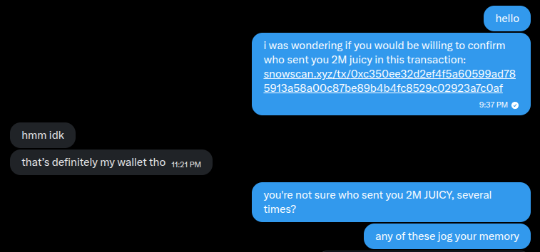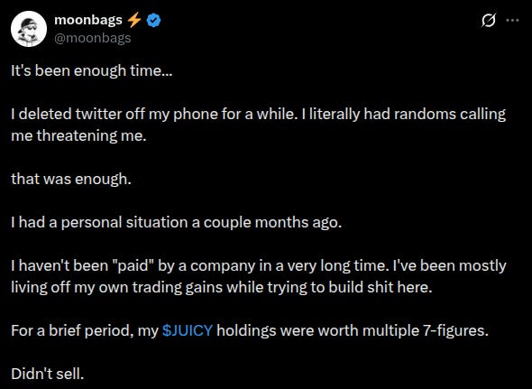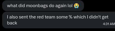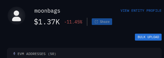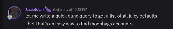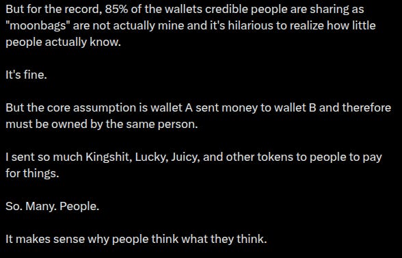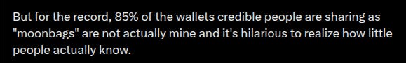 Had to double check, but it looked like I was the only person who pointed to specific wallets in the last post. You know, other than that guy who posted screenshots where Moonbags tried to get him to put up MORE collateral for him to dump into.