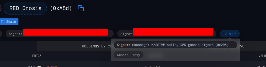 Here’s a Gnosis Safe for $RED, the flagship launch on FizSocial (a Moonbags product) which I am told Moonbags was behind (went to zero).