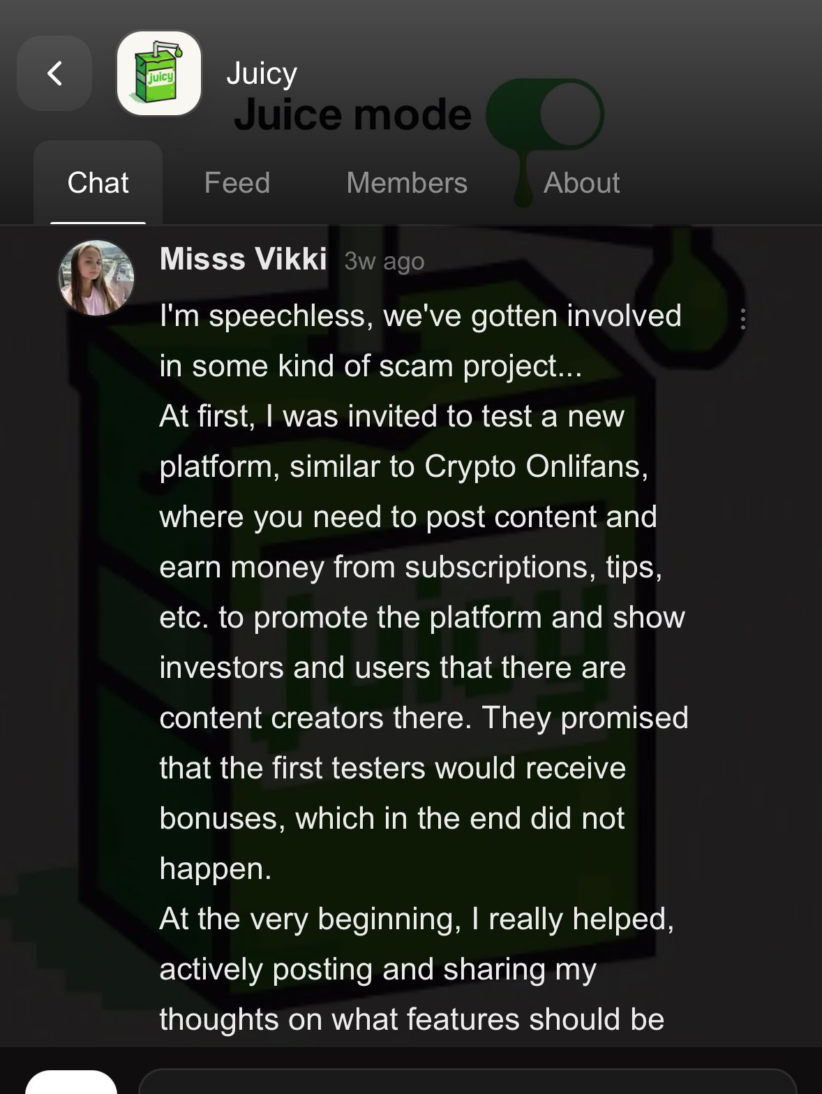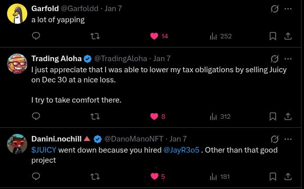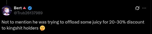 Like the OTC sales? If you recall from earlier, he was openly posting about OTC’ing Juicy to people. You can call it what you want but that’s selling (eventually).