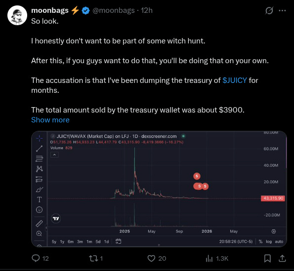 I’m a little confused though; someone mentioned 15% of Juicy was the dev allocation. How did he manage to default on 16.5%? That’s not even including the OTC and the direct sales.