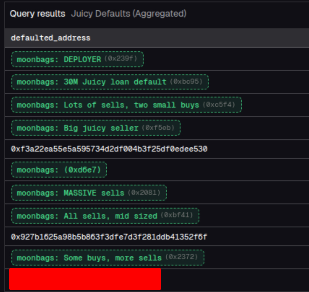 Somehow almost ALL of the defaulters were already tagged as Moonbags, color me surprised. I went to check those last two untagged ones, and yup, also Moonbags.