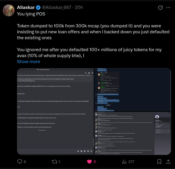 He sold tokens by defaulting on SIXTEEN FUCKING PERCENT OF THE FLOAT into Salvor loans