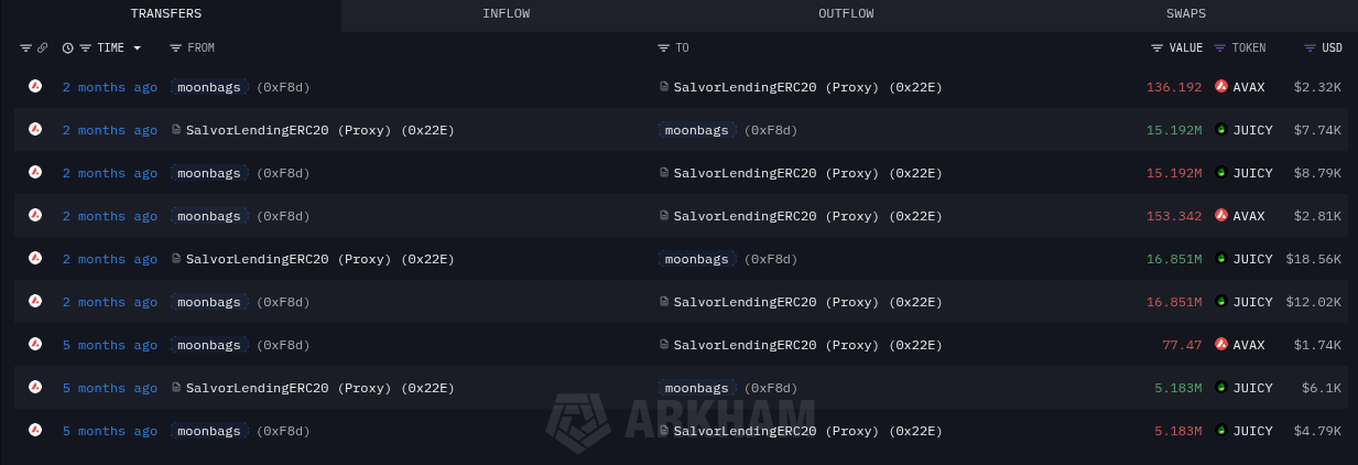 Anyway, I’ve long been aware of him dumping $juicy, in fact I’ve posted myself about him dumping it via Salvor loans. So one small thing in here jumped out at me.